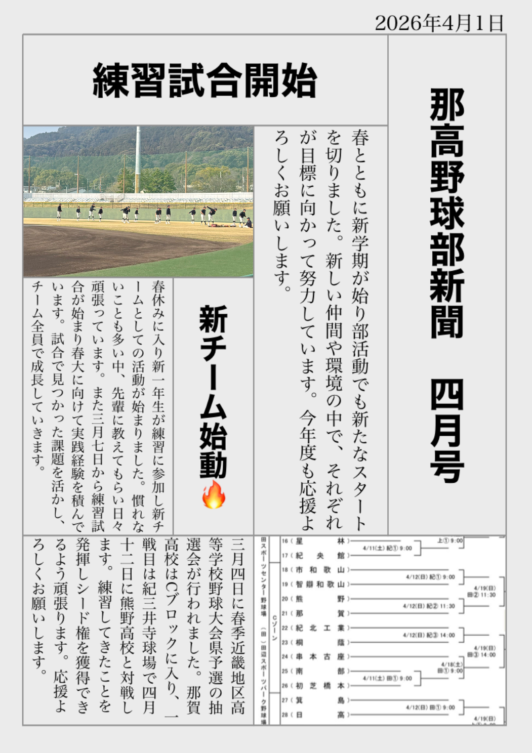 那高野球部新聞 四月号