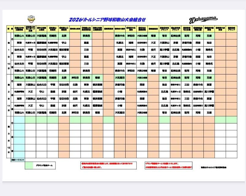 2026リトルシニア野球和歌山大会の予選リーグの日程が決定いたしましたのでお知らせします。