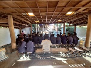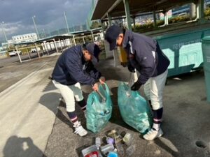 4日より活動が始まりました。 大宮神社で御祈祷をしてもらいました。主将が絵馬に書いたのは「下剋上」。 帰り道は地域清掃のゴミ拾いをしながら帰校し練習をしました。