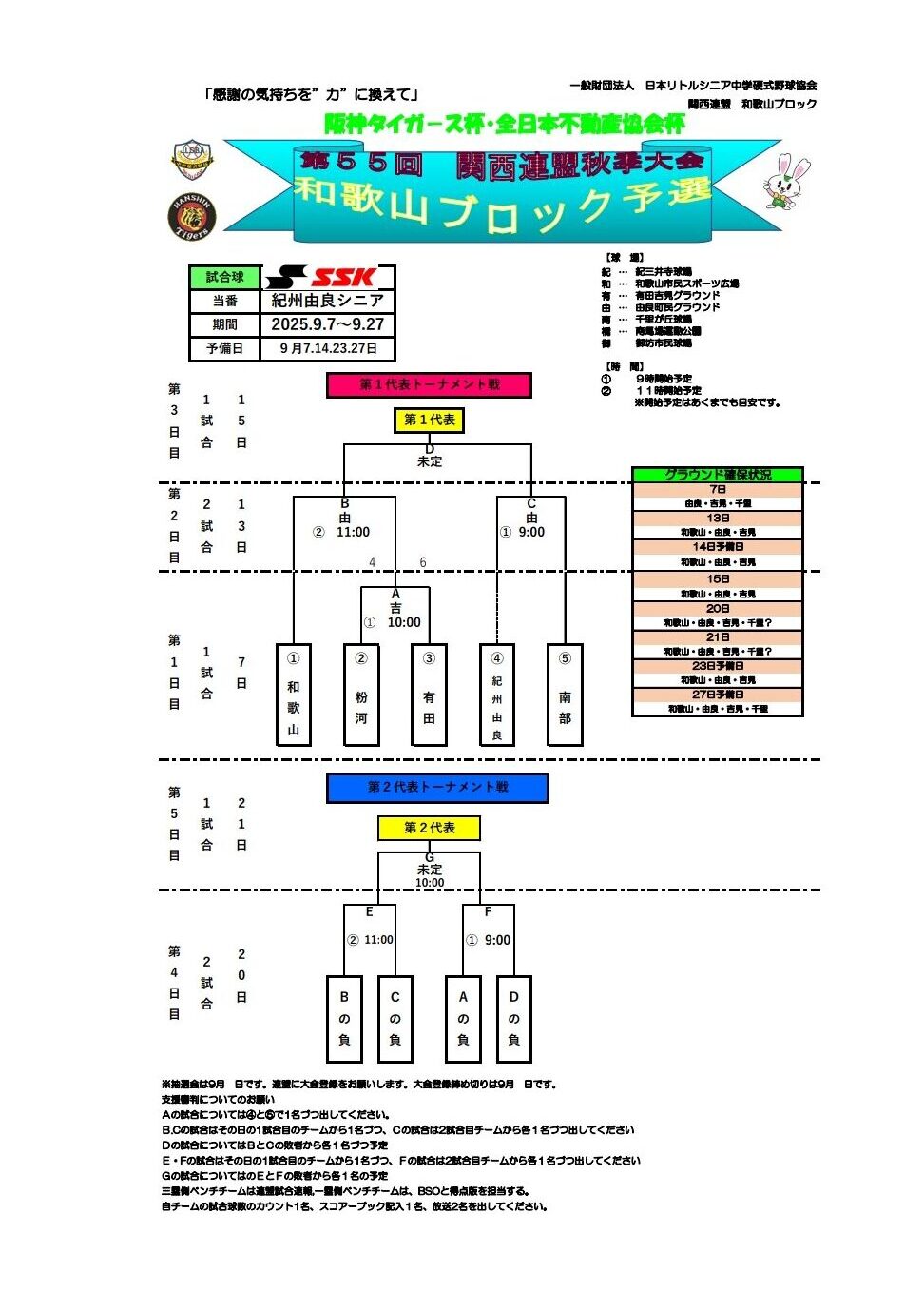 第55回関西連盟秋季大会和歌山ブロック予選日程変更について