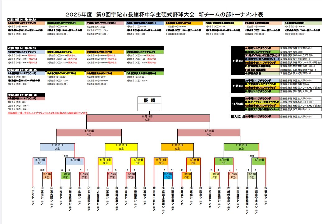 第9回宇陀市長旗杯中学生硬式野球大会勝ち上がりトーナメント