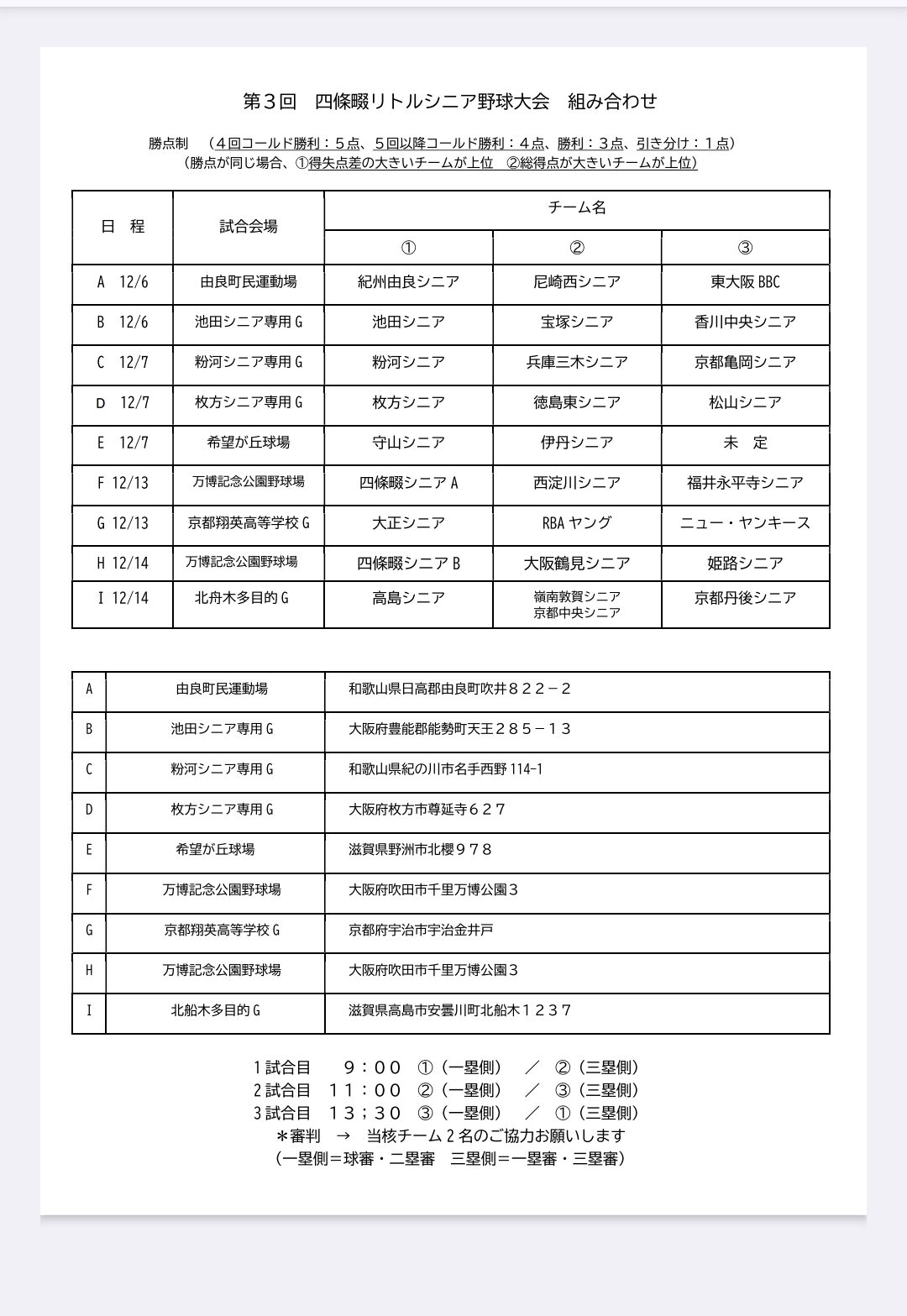 第3回四條畷リトルシニア野球大会の日程が決定致しましたのでお知らせします。
