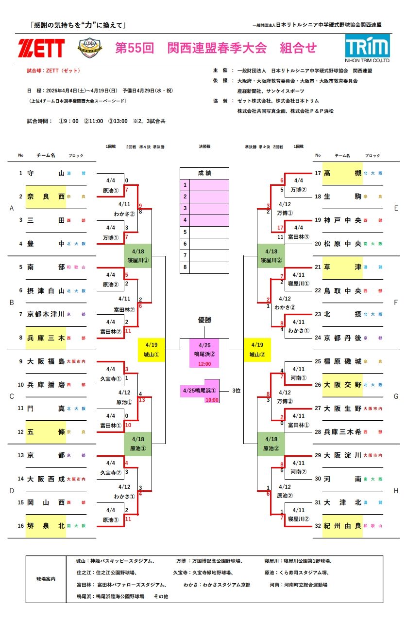 第55回関西連盟春季大会二回戦も勝利することができました。準々決勝進出となります。準々決勝の日程は下記の通りです。
